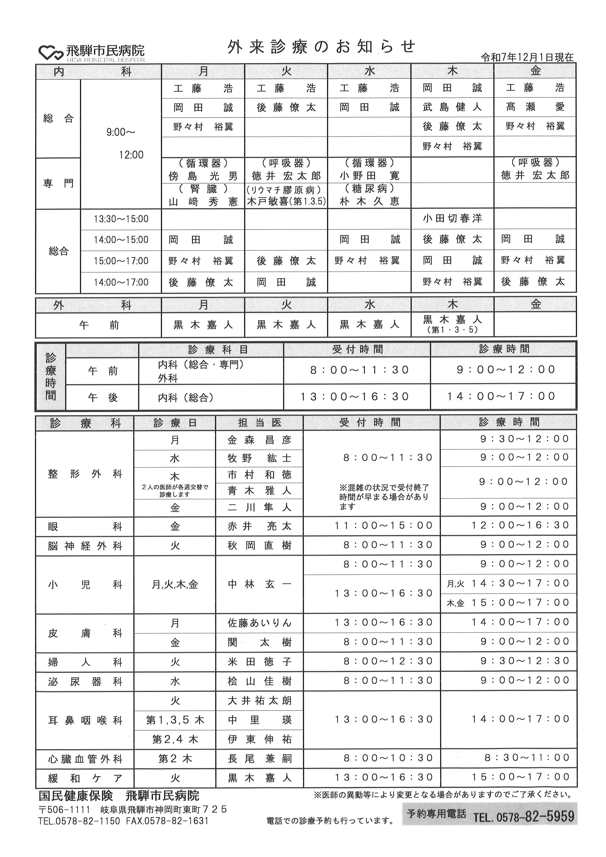 ※各診療科別のご案内はこちらまたは右の画像からご確認ください。